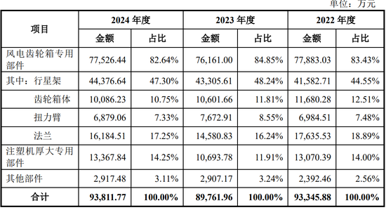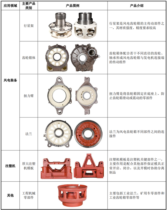 公司主要从事大型高端装备专用部件的研发、制造与销售,产品结构以风电齿轮箱专用部件为主、注塑机厚大专用部件为辅的大型高端装备专用部件制造商。公司产品主要应用于大型风电装备与注塑机领域,公司是国内少数可提供风电齿轮箱专用部件全工序服务的企业。