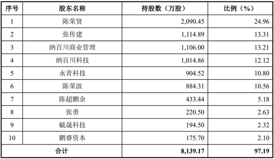公司实际控制人陈荣贤、张丽琴、陈超鹏余直接持有和间接控制4,654.30 万股,占公司发行前的股权比例为55.58%。同时,根据相关协议约定,公司股东张传建、陈荣波在其持股期间与公司实际控制人采取一致行动,并以陈荣贤先生的意见作为最终形成的一致行动意见;公司股东潘虹、徐元文、张勇在其持股期间将投票权不可撤销地委托给陈荣贤行使。