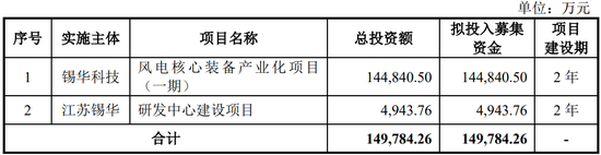 本次IPO,公司拟募集资金149,784.26万元,分别用于风电核心装备产业化项目(一期)、研发中心建设项目。
