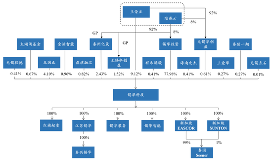 王荣正、陆燕云分别持有锡华投资92%、8%股权,锡华投资持有公司 77.98%股权;此外,王荣正直接持有公司9.12%股权,并通过担任泰州亿晟、无锡弘创盈、无锡华创盈执行事务合伙人,合计控制公司4.56%股权对应的表决权。王荣正、陆燕云系夫妻关系,二人合计控制公司91.66%股权对应的表决权,为公司共同实际控制人。