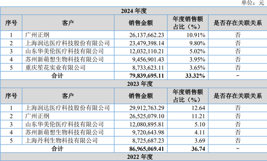 报告期内,公司前五大客户占年度销售额的比例分别为49.62%、36.74%和33.32%。