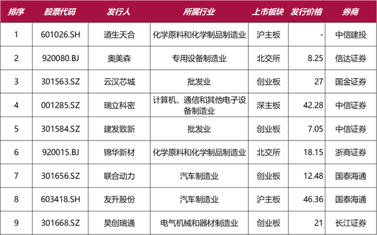 截止9月19日,A股启动发行还未挂牌上市的企业共有9家,具体如下: