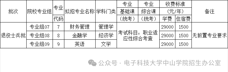 二、电子科技大学中山学院2026年退役大学生士兵普通专升本招生专业目录